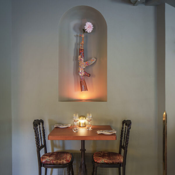 Persian cuisine with French and Scandinavian influences is on the menu at Coup d’état — French for “state coup.” The nations referenced in the kitchen are echoed in Tengbom’s interior concept. This is a restaurant that aims to shake things up, even if the weapons on the walls have had flowers tucked into their barrels.