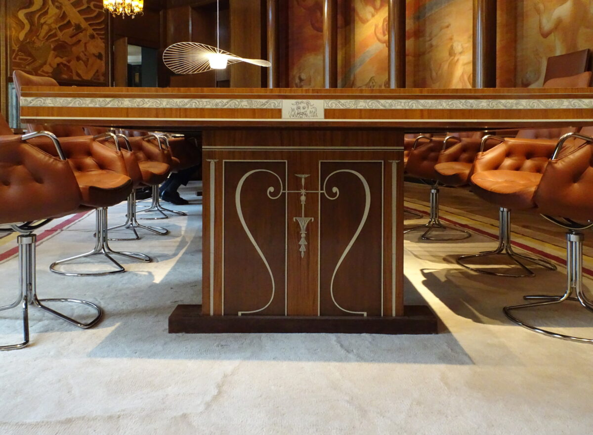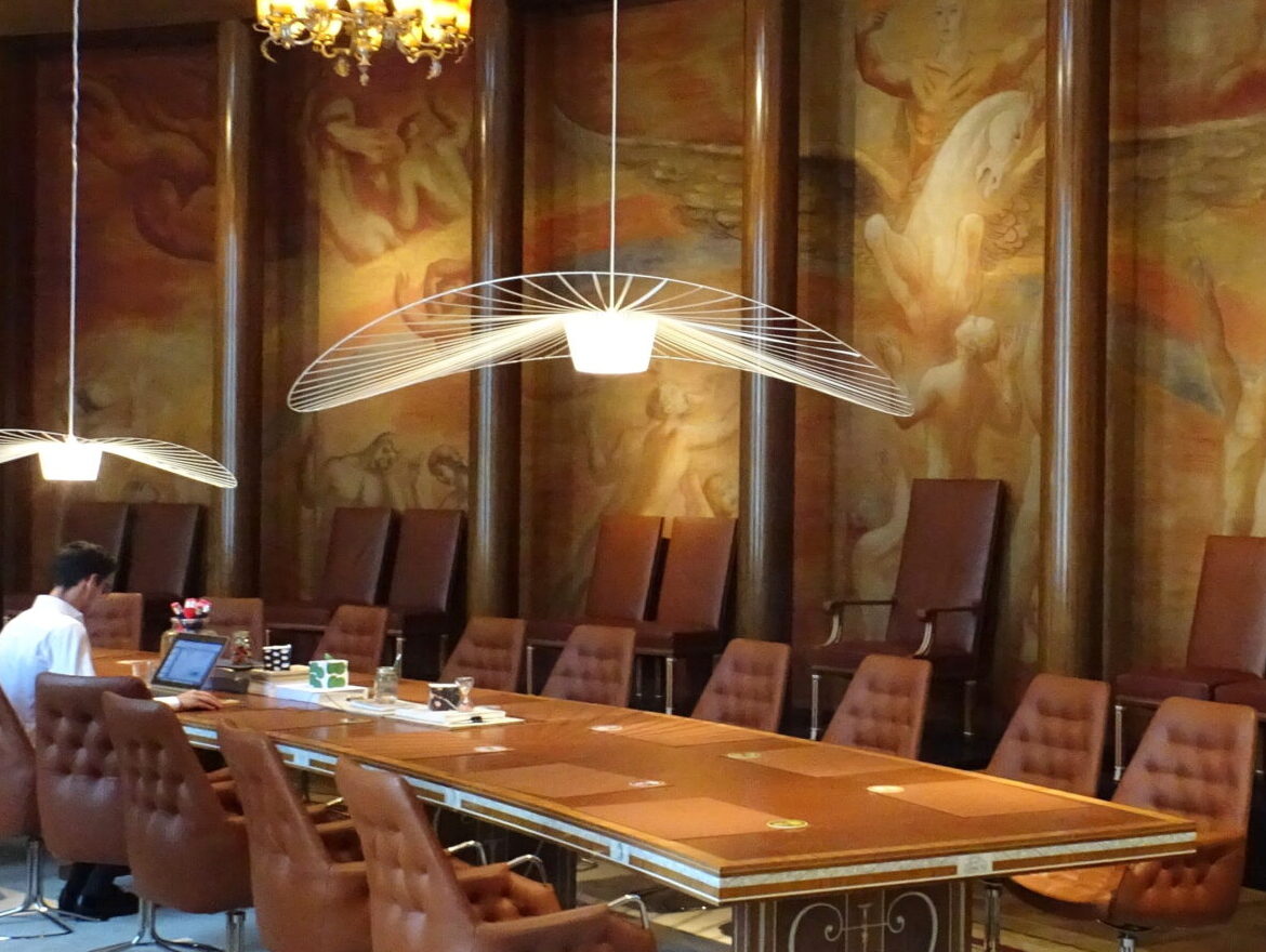 Inside, Tengbom orchestrated a seamless collaboration between artists and craftsmen. Details like mahogany panels, custom furniture by Carl Malmsten, and textiles by Elsa Gullberg echo the building’s themes of fire and stars, drawn from Kreuger’s matchboxes.